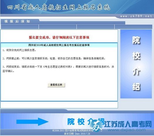 Ø 阅读完考生填报须知后后,点击页面下方的[查看报名表]按钮,即可查看考生填报的报名信息。